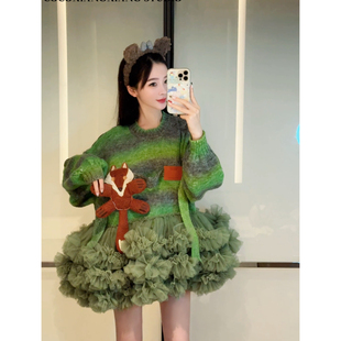 节日氛围感宽松休闲上衣 新款 巴卜Studio 红色毛衣不含毛领冬季