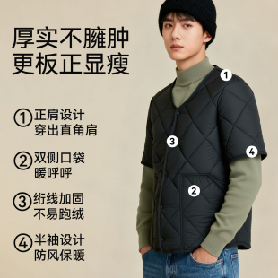 外穿休闲防风棉服外套 秋冬内穿保暖棉衣内胆冬装 羽绒半袖 马甲男款