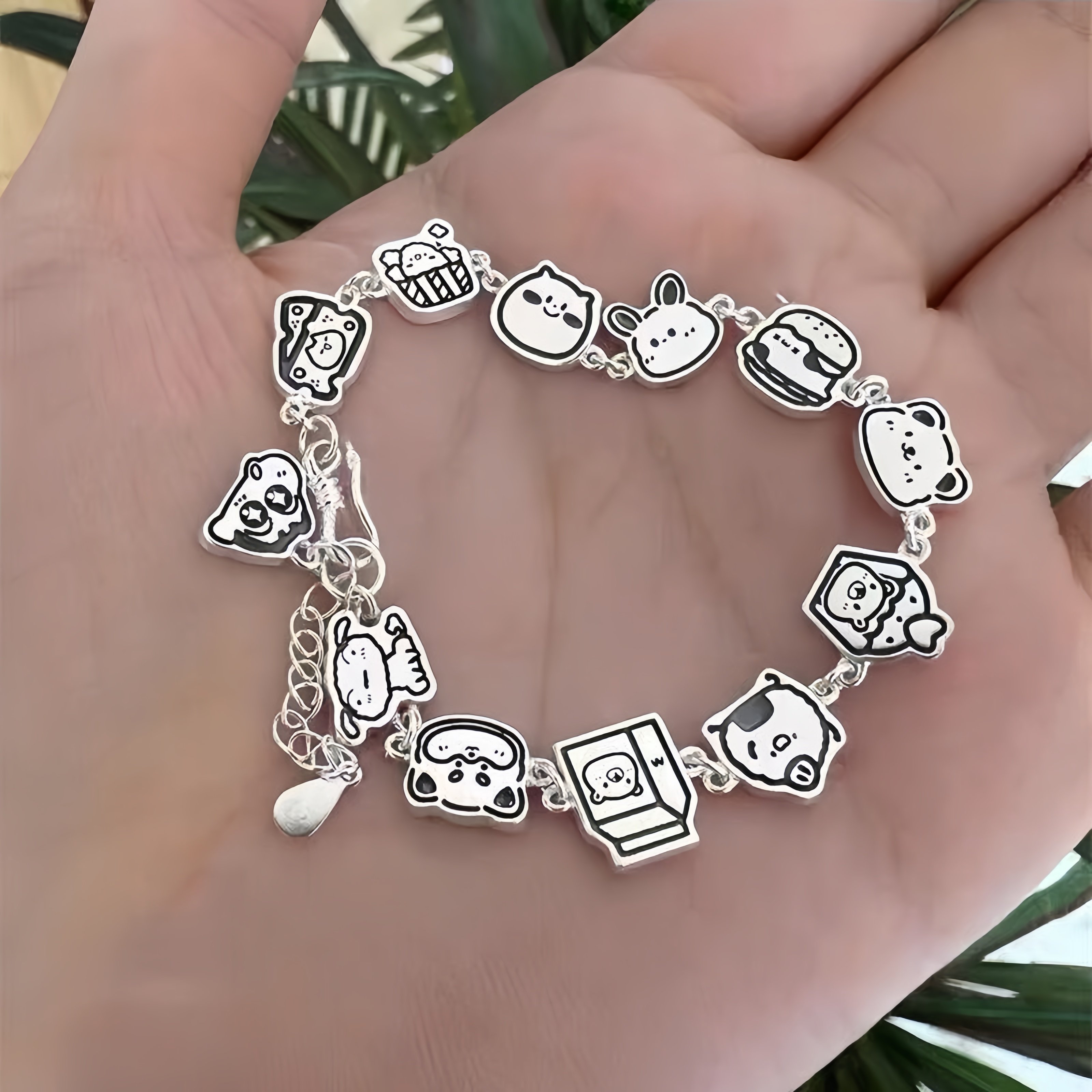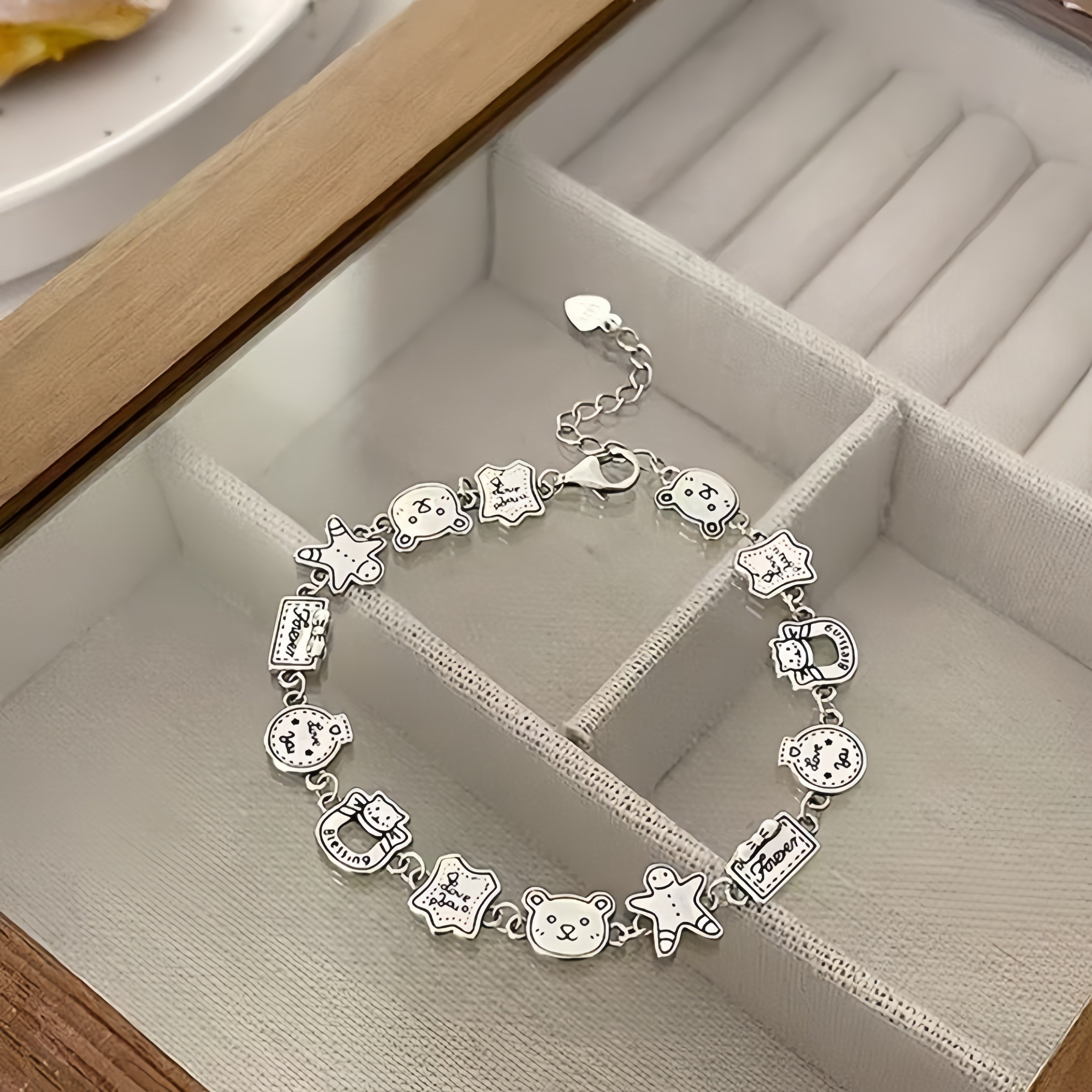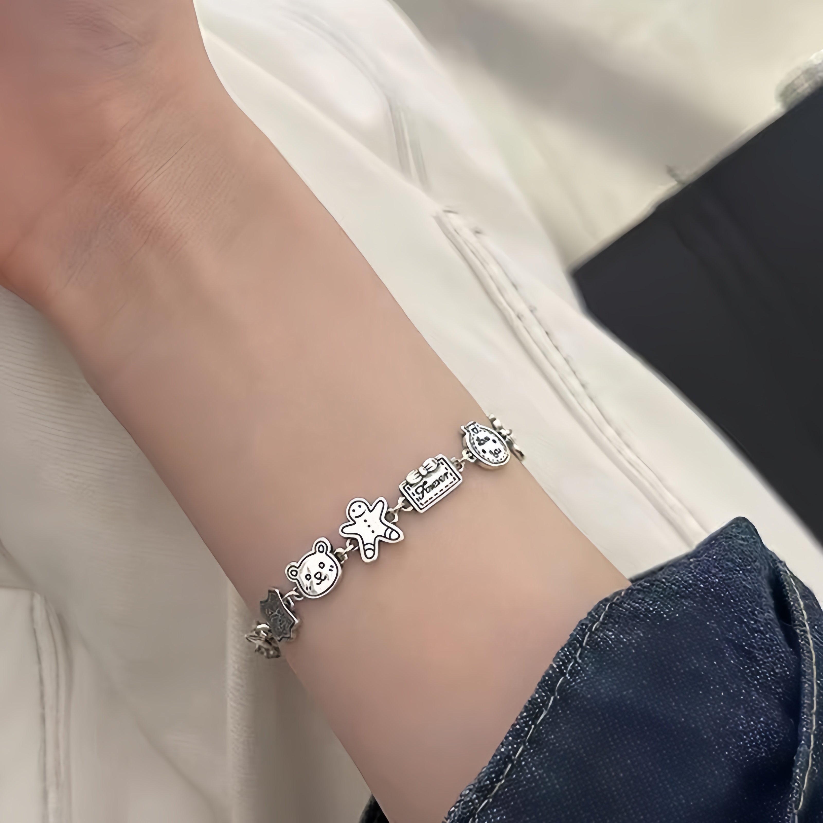 圣诞Party 童趣金属涂鸦卡通手链姜饼人小熊饼干接设计感创意手链