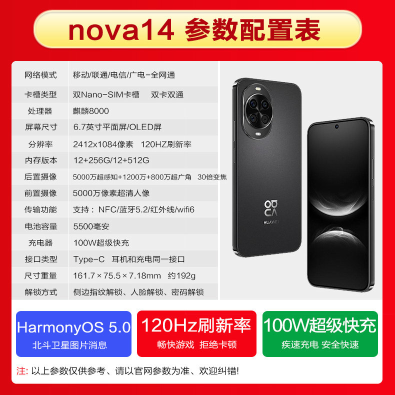 Huawei 华为 nova 全网通NFC鸿蒙智能手机平面屏华为官方旗舰店正品 上市 官网红外线学生游戏手机 新款