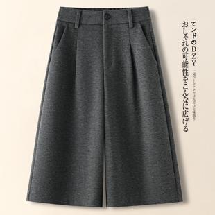 小个子七分毛呢休闲裤 拉夏贝尔米白色羊绒阔腿裤 女秋冬2025年新款