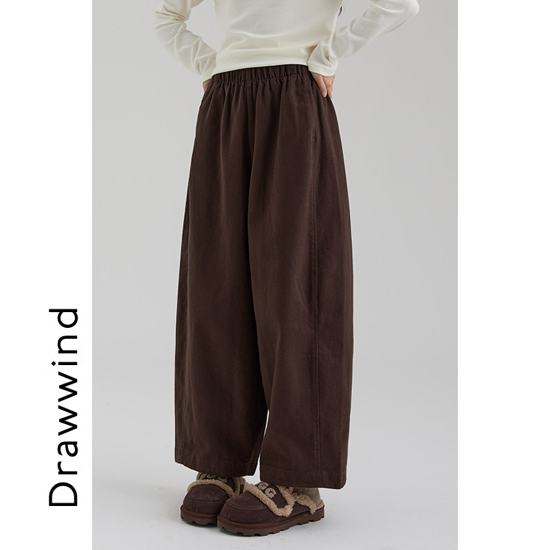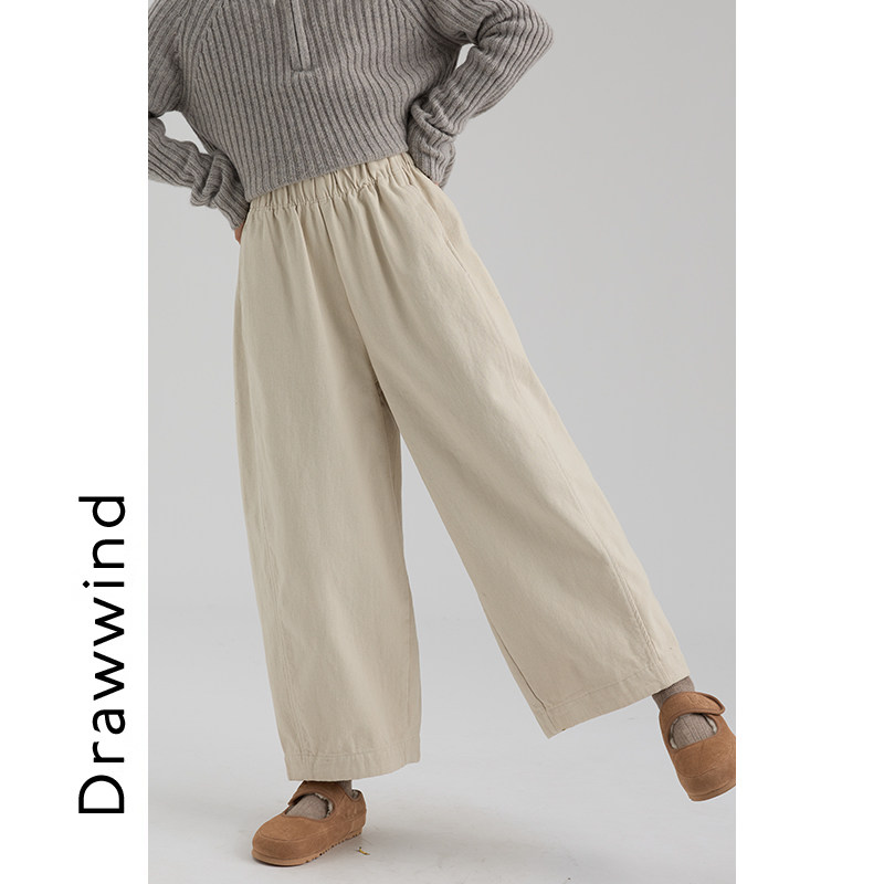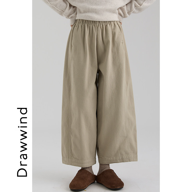 宽松纯棉休闲阔腿长裤 画风drawwind松紧腰加绒裤 子女2025秋冬新款