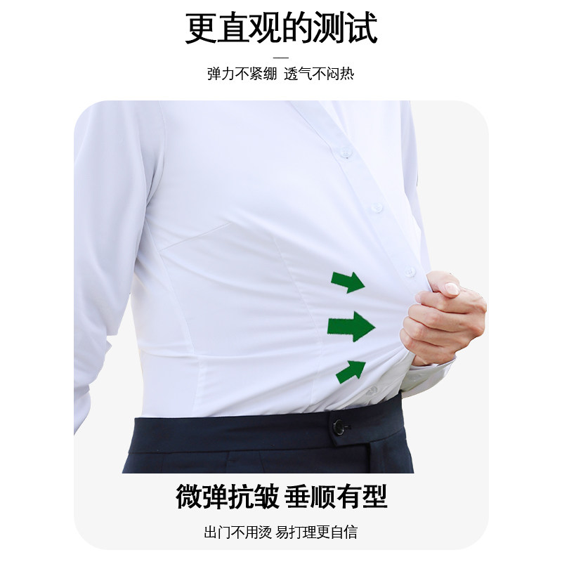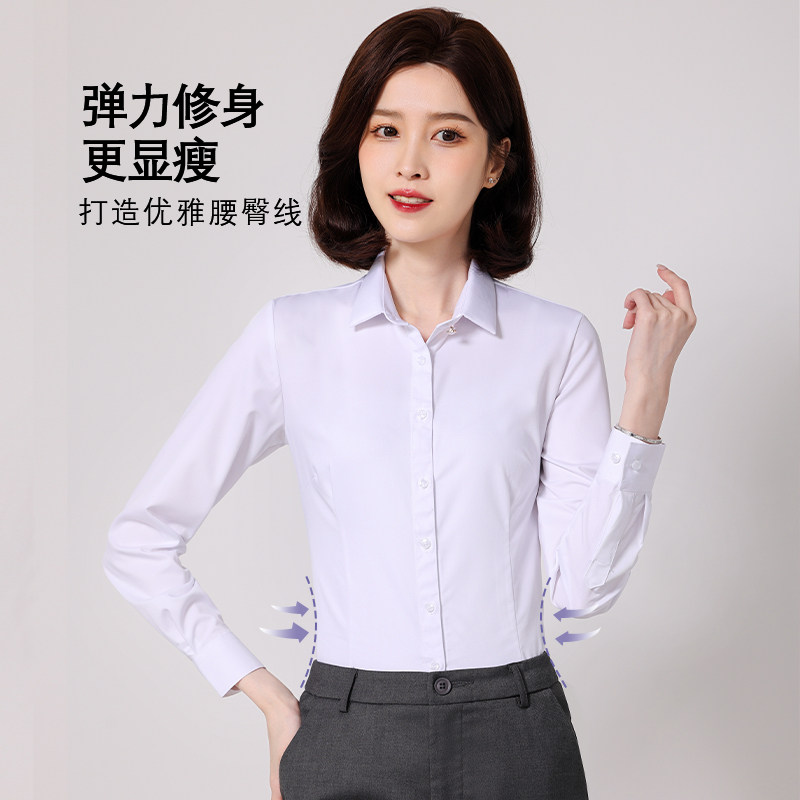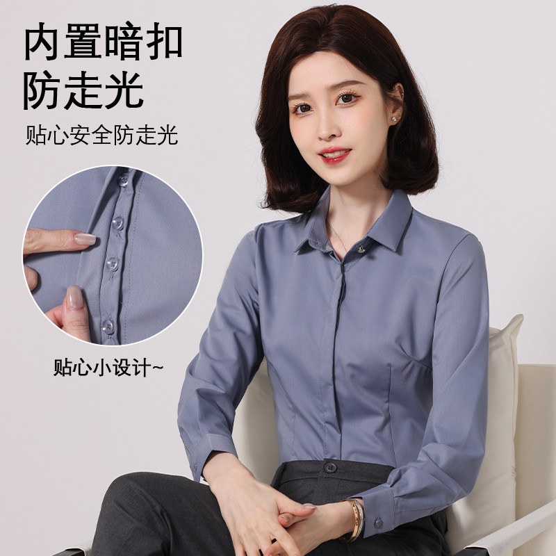 气质免烫白衬衣女工作服 商务职业正装 竹纤维V领灰色衬衫 女士长袖