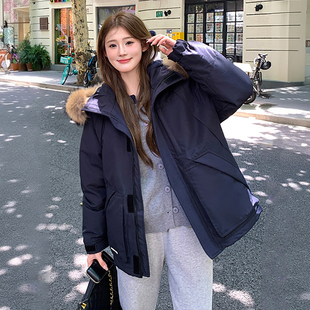 工装 复古夹棉加厚棉服女秋冬新款 派克服外套潮 胖mm美式 300斤大码