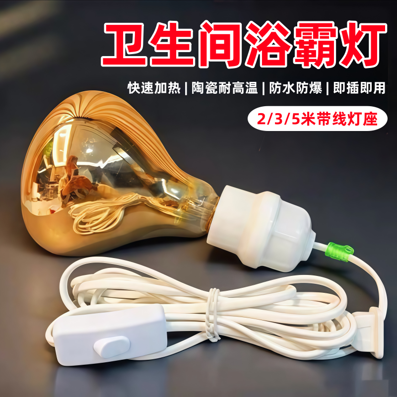 浴霸灯泡取暖灯防爆防水275w卫生间灯暖家用洗澡间壁挂式 照明钨丝