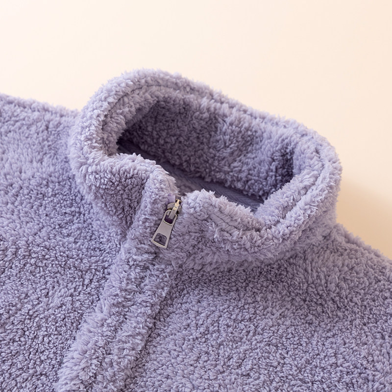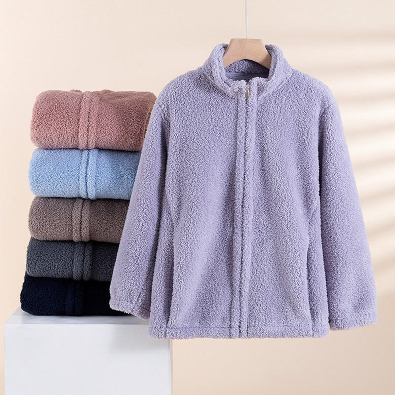 睡衣上衣单件家居服 保暖加厚可外穿开衫 冬季 加绒拉链上衣男女同款