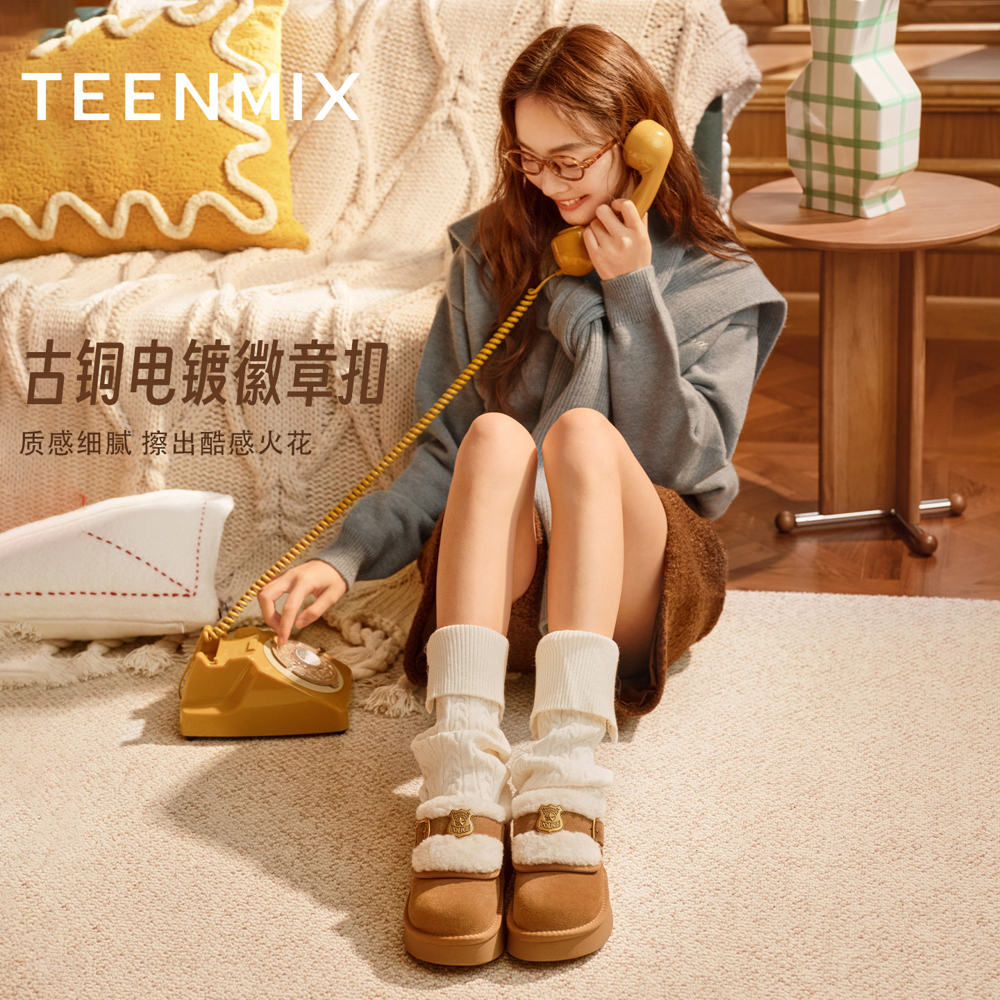 棉鞋 天美意厚底加绒保暖毛毛鞋 衣橱直播间 女短靴 所有女生