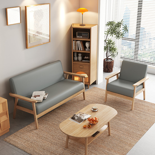 实木日式 沙发小户型客厅公寓简易原木风单人双人椅出租屋小型简约