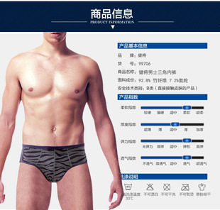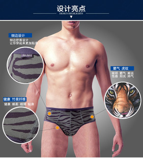 竹纤维条纹虎纹透气舒适运动防勒短裤 3条健将男士 三角中腰内裤