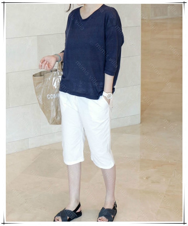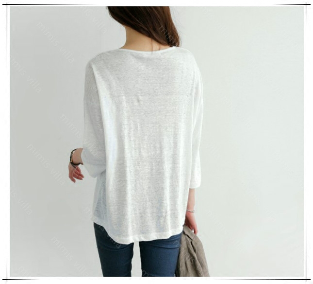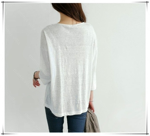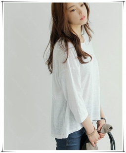 k1018韩国女装 宽松简约套头素色夏秋女t恤现货 2025亚麻凉爽七分袖