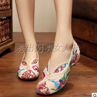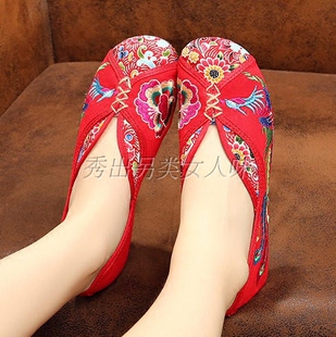 广场舞蹈女单鞋 老北京牛筋底布鞋 彩凤套脚内增高绣花鞋 春夏秋季