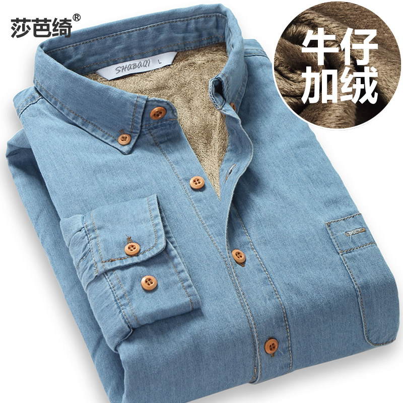 双色水洗磨毛长袖 几立 牛仔衬衫 夕阳倒映在蓝色天际
