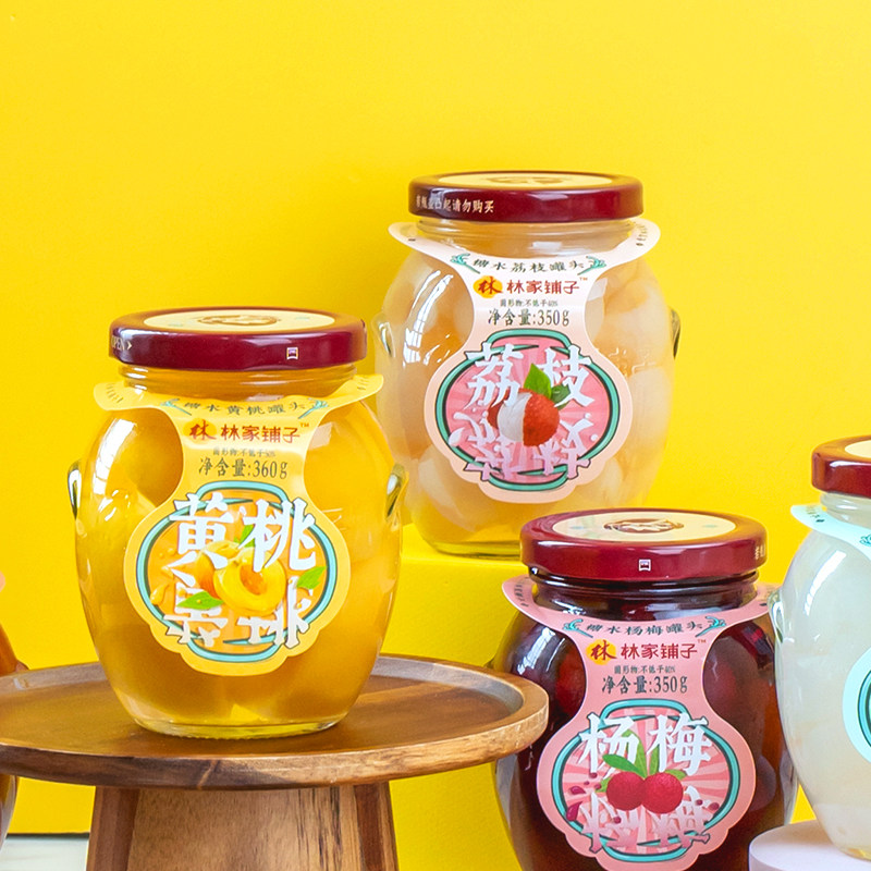 林家铺子黄桃罐头360g 6水果罐头荔枝橘子桃罐头枇杷糖水玻璃瓶