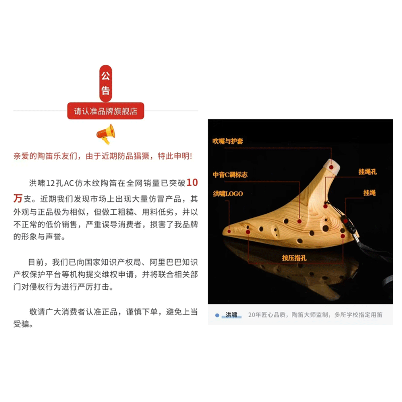 洪啸陶笛12孔AC调树脂十二孔中音C调塑胶初学送视频学生儿童爆款