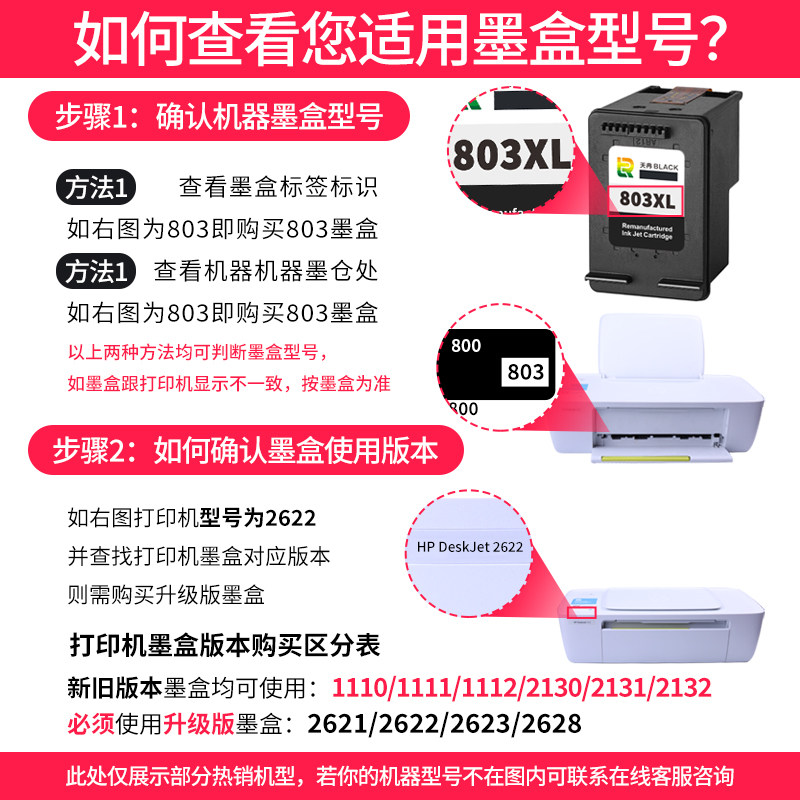 HP2132 天冉兼容惠普803墨盒2621 1111 1112 2622打印机黑色 2131
