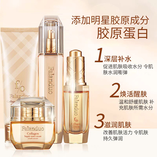 精华抗皱滋养女正品 法兰朵胶原蛋白护肤品套装 水乳液面霜补水保湿