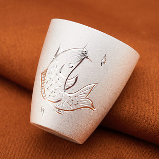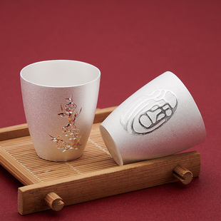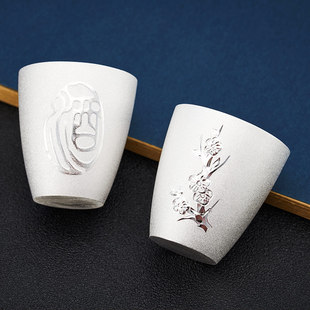 顺庆银楼S999纯银小酒杯茶杯足银磨砂小银杯水杯男士 礼物 礼盒装