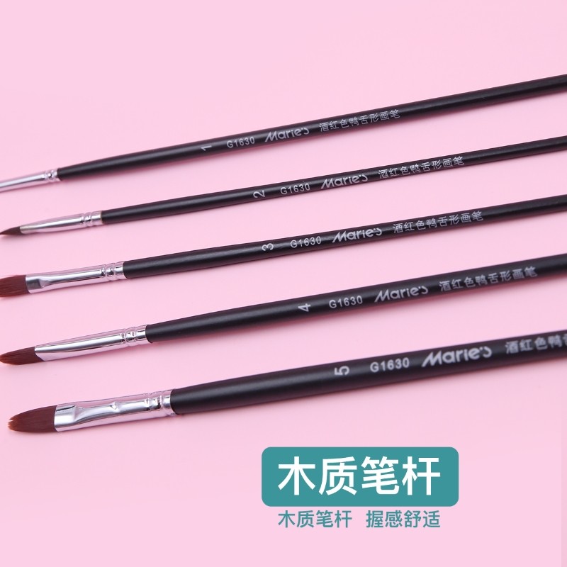 丙烯水粉水彩尼龙画笔鸭舌型油画笔美术生专用勾线描边手绘画画长杆色彩笔排笔初学者画材圆形用笔扁圆峰套装