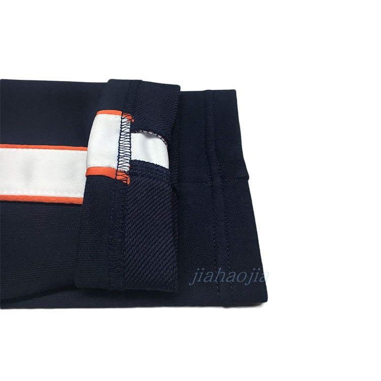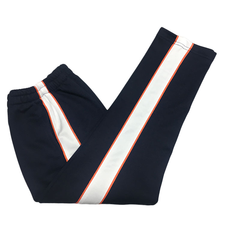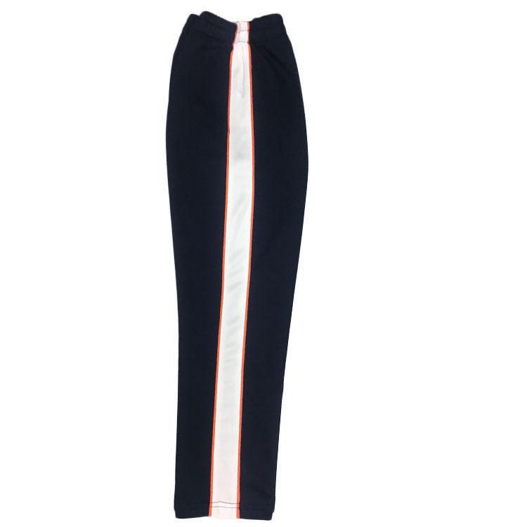 全棉深藏青镶白宽两侧桔黄边春夏秋小中学生运动裤 直筒 休闲校服裤