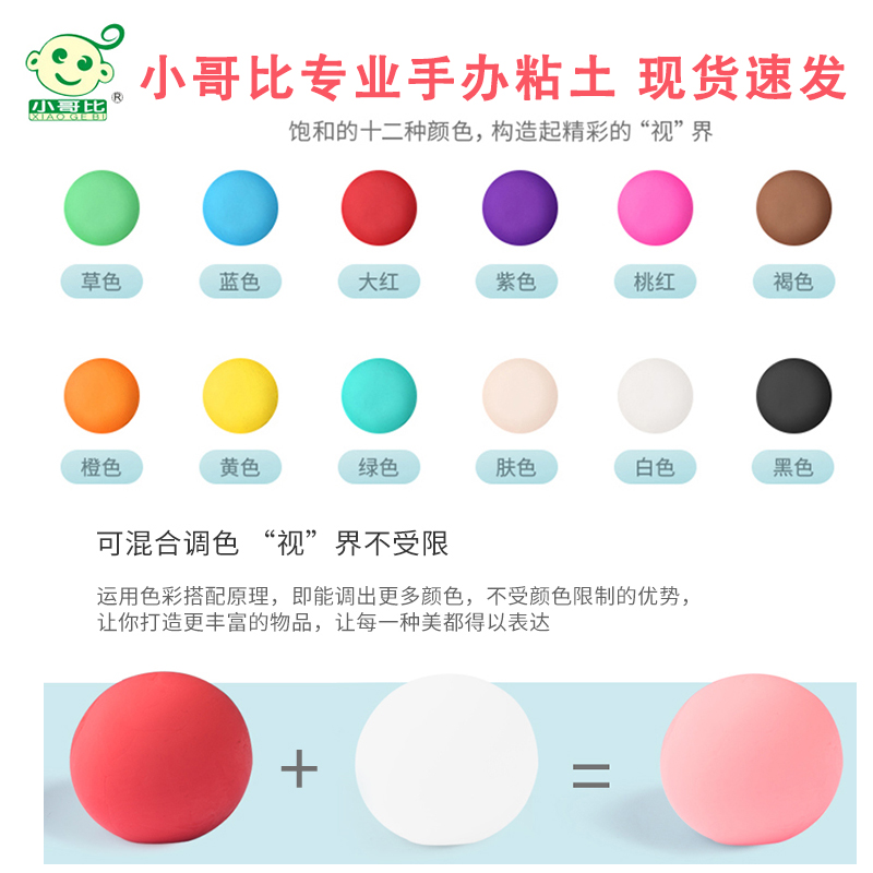 橡胶泥 无毒环保手办diy材料包工具套装 白色超轻粘土500儿童g彩泥24色橡皮泥红色黏土幼儿大包装 单色补充装