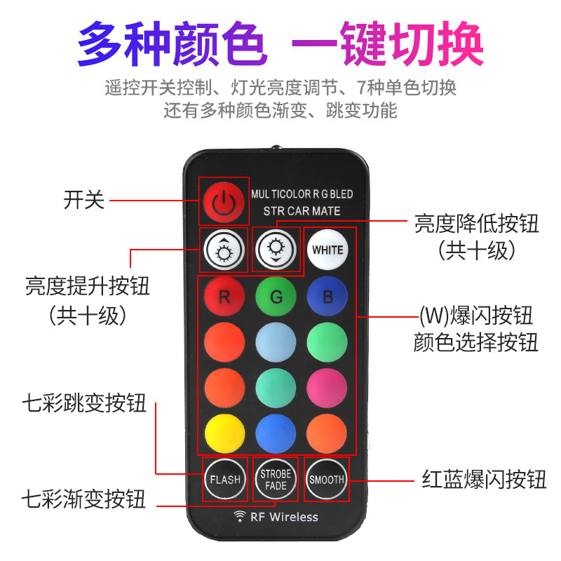 七彩车内遥控汽车日行灯 通用 超亮led示宽灯t10示宽灯爆闪 改装