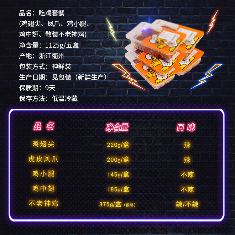 香辣卤味零食组合套餐小吃 锁鲜吃鸡套餐1125g 不老神