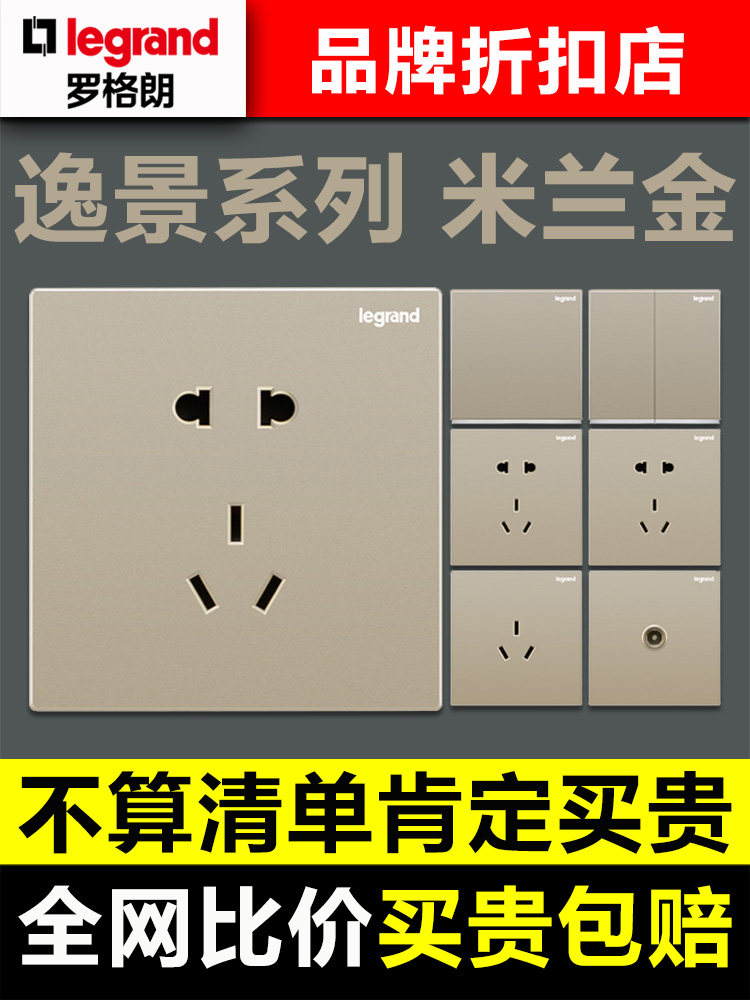 tcl罗格朗开关插座usb面板逸景米兰金一开5五孔二三家用86型套餐