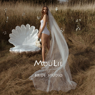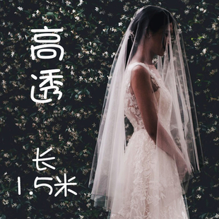 头纱新娘主婚纱长款 拖尾白色结婚婚礼求婚领证高级感素纱超透高清