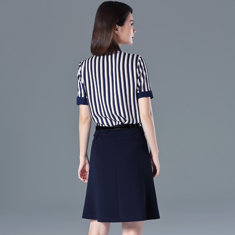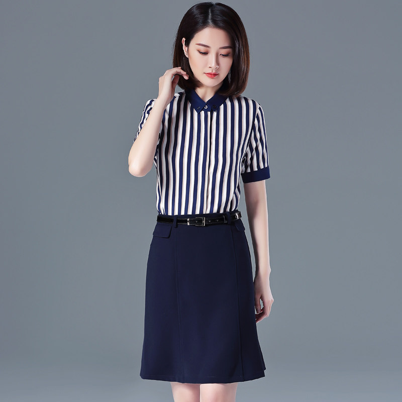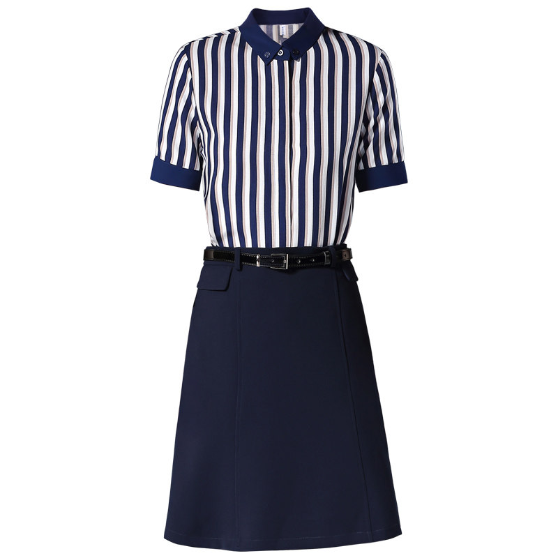 蓝白条纹工作服短袖 璐丝百丽职业套装 气质新款 时尚 套裙 女2025夏季