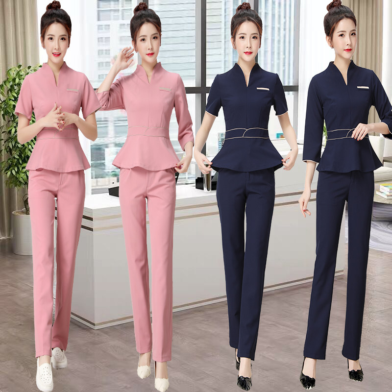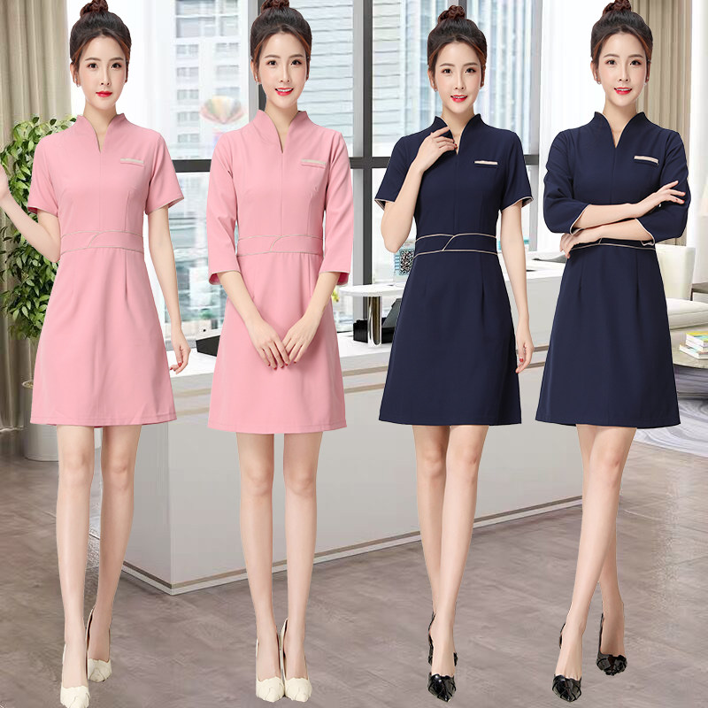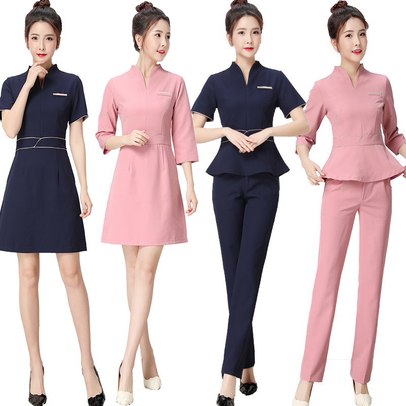 装 高档美容师工作服女时尚 足疗店裤 美容美甲师套装 连衣裙技师工装