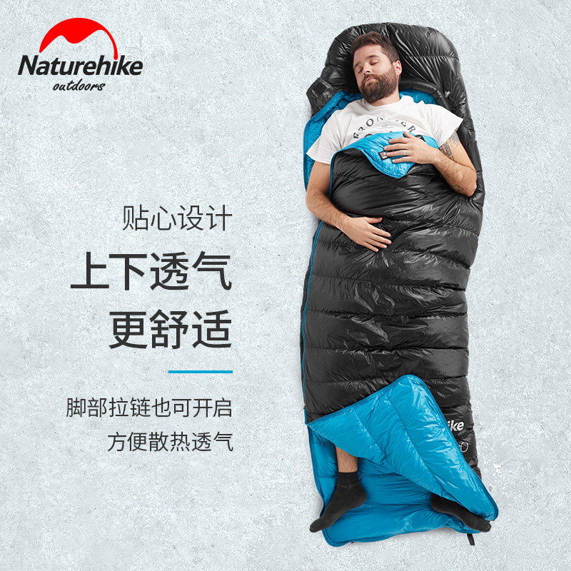 鸭绒睡袋户外成人防寒保暖羽绒睡袋 B1000木乃伊式 黑冰 B系列B700