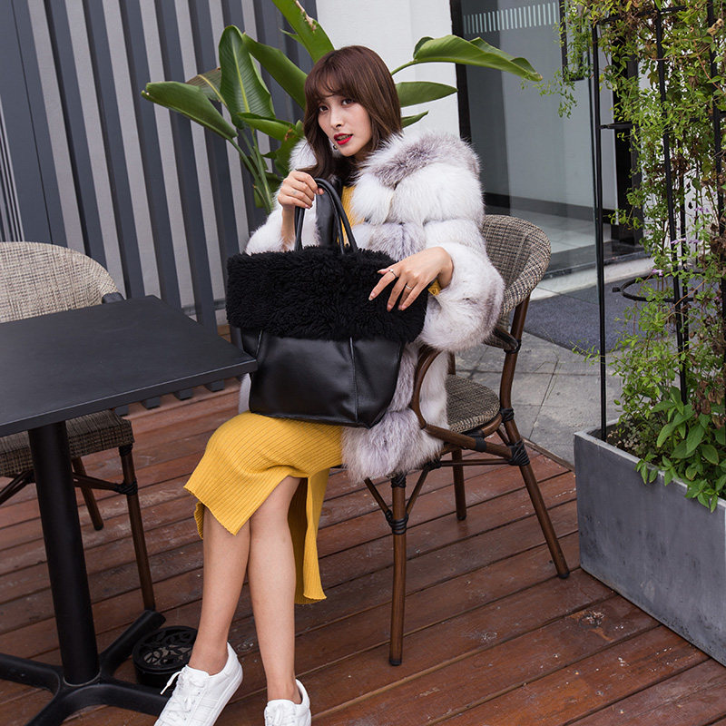 时尚 大牌包包女头层牛皮皮草包包手提羊毛包大容量包包真皮女包包