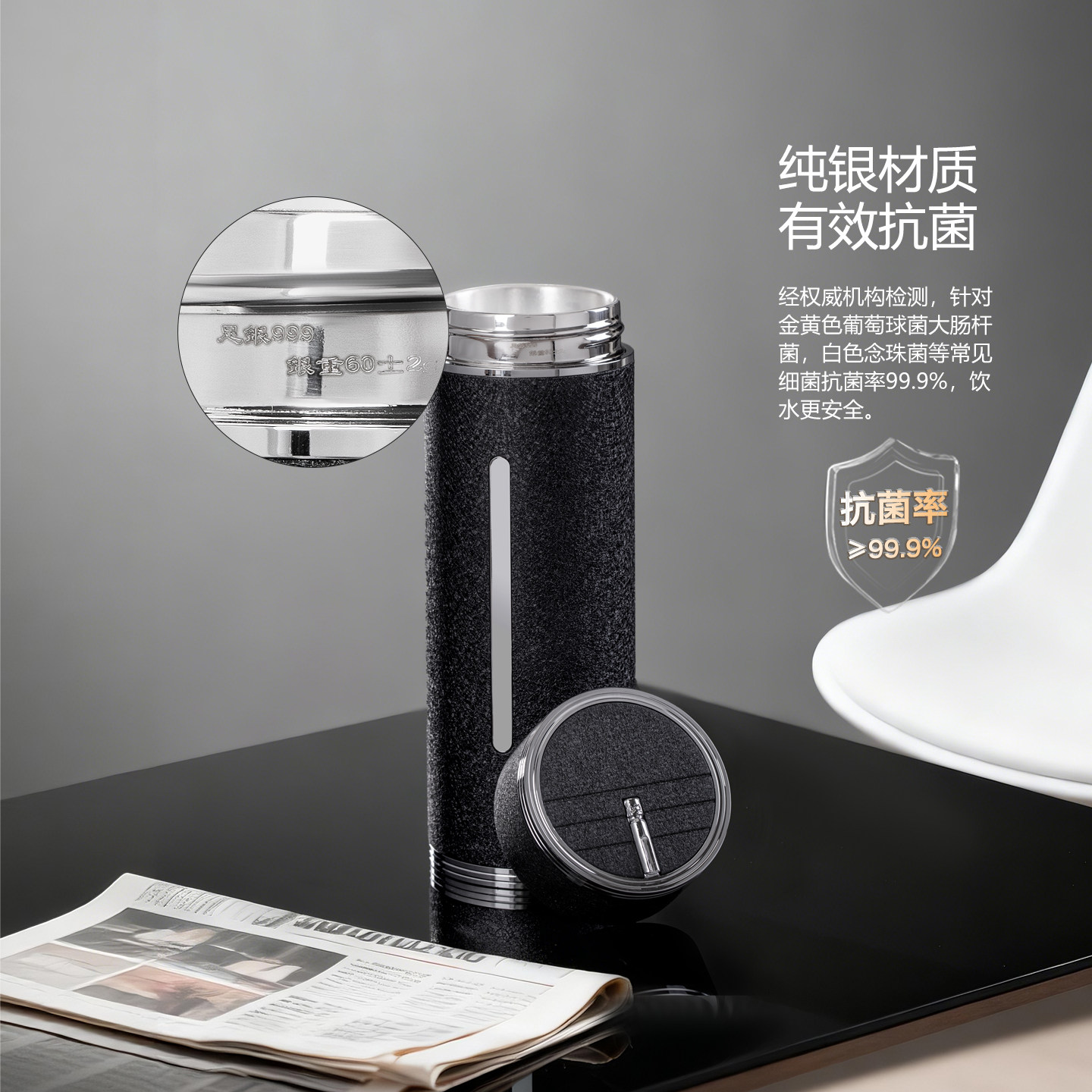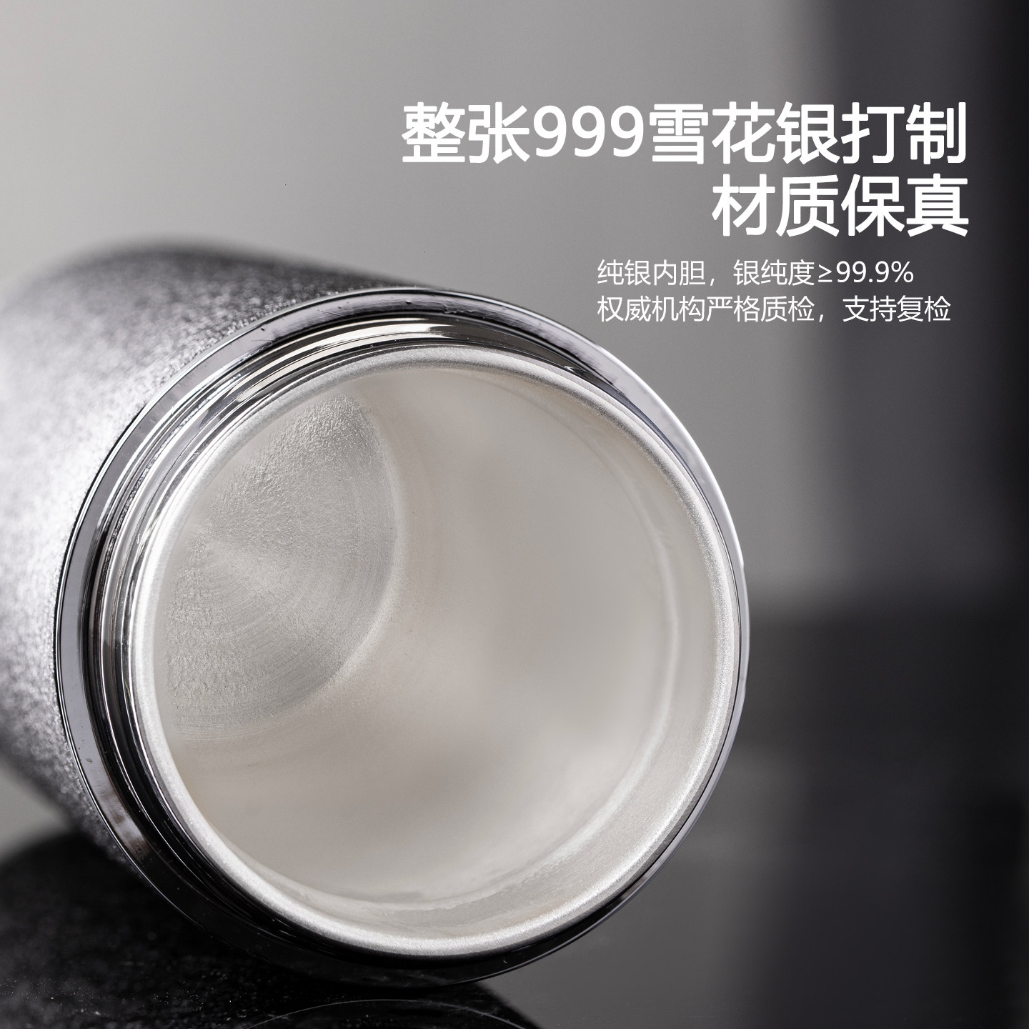 高档足银杯子 男士 云南雪花银茶杯送礼 999纯银内胆保温杯 银水杯
