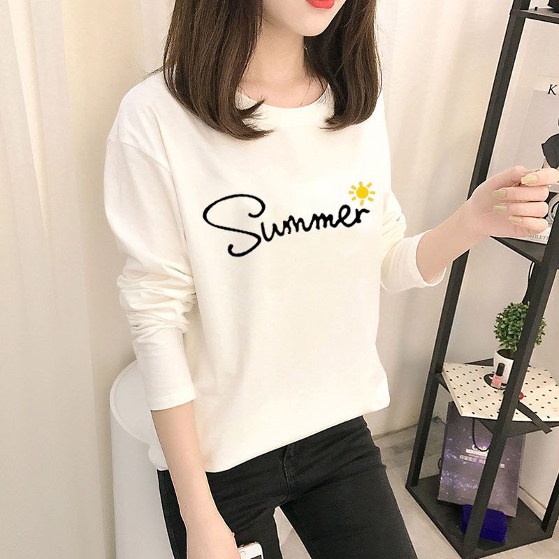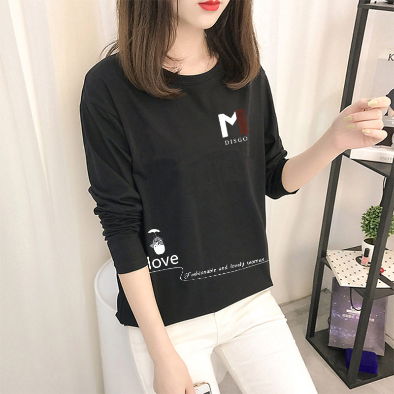 2025年休闲气质上衣打底衫 t恤女秋装 潮 100%纯棉长袖 外贸出口反季