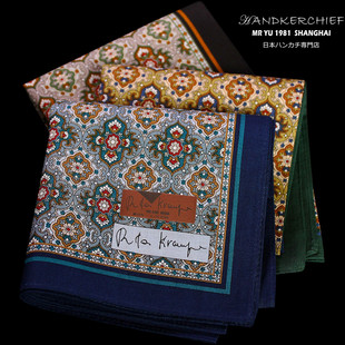 日本进口复古染逆天奢华英伦图腾男士 大手帕随身全棉手绢纯棉商务