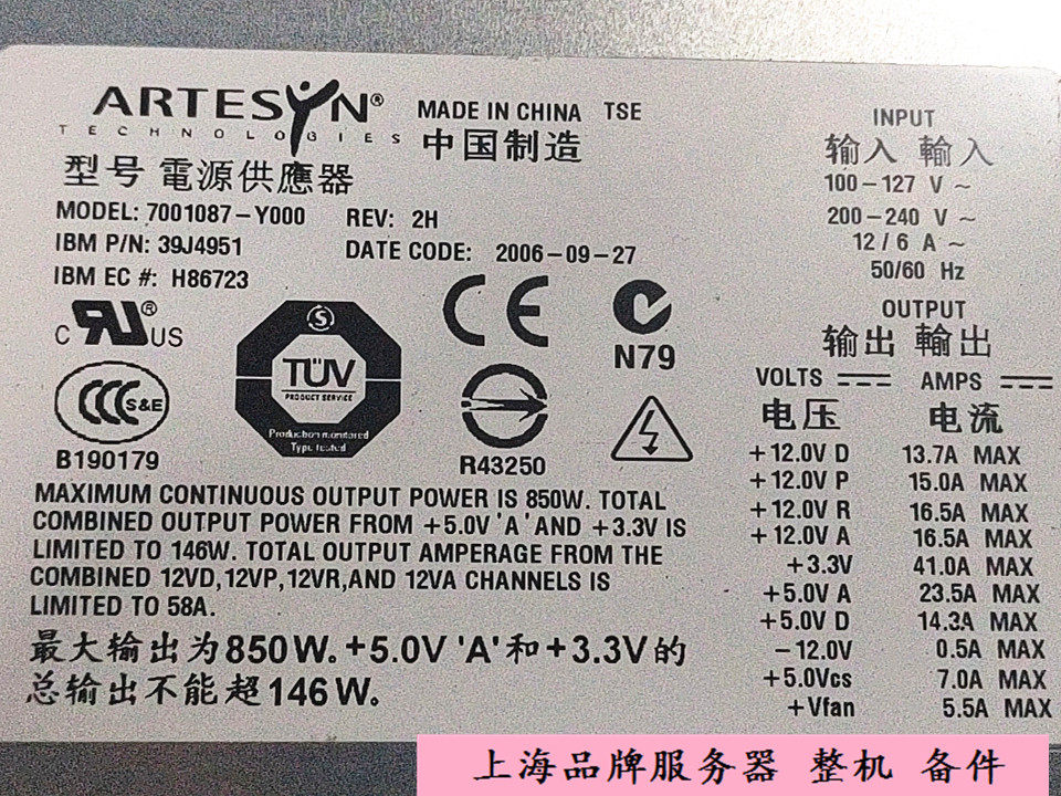 P52A 9131 P520 I520小型机电源850W Y000 IBM 7001087 39J4951