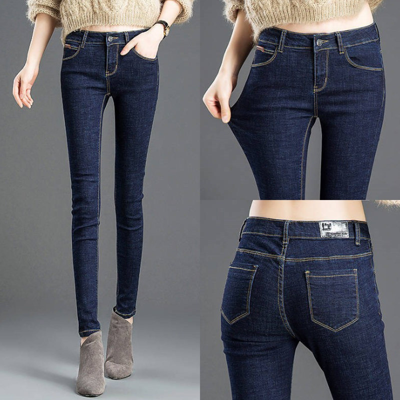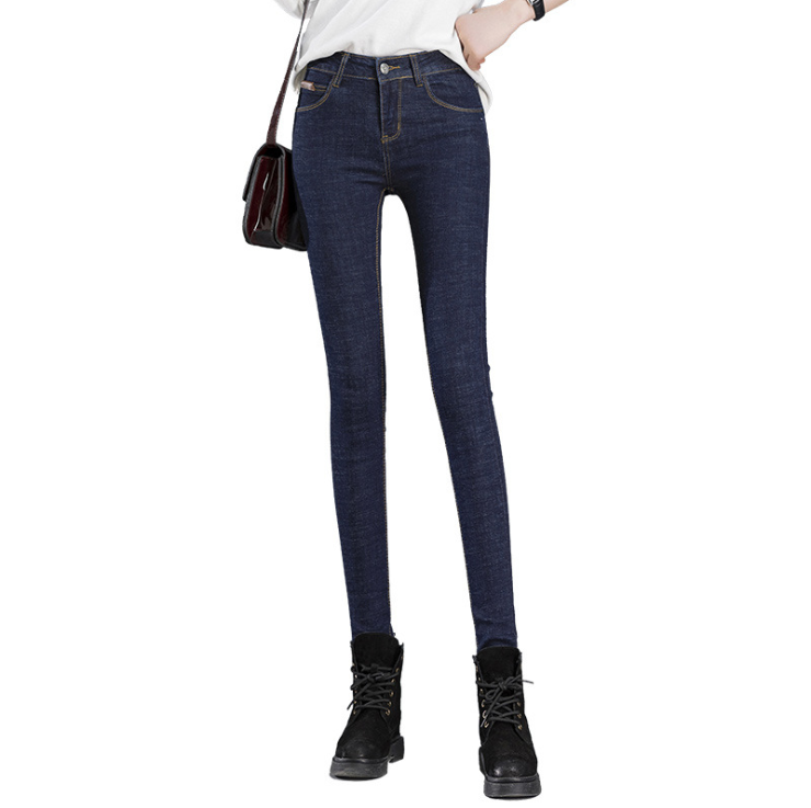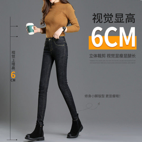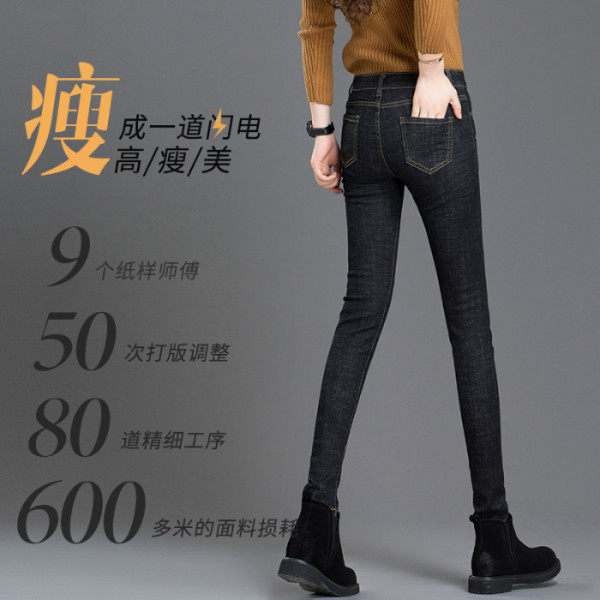 黑色弹力牛仔裤 女初秋薄绒抓绒加绒加厚高腰显瘦显腿长紧身小脚裤