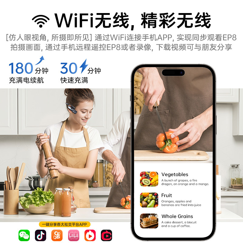欧达ep8头戴式 摄像机第一视角运动相机4K超高清记录摄影视频设备v