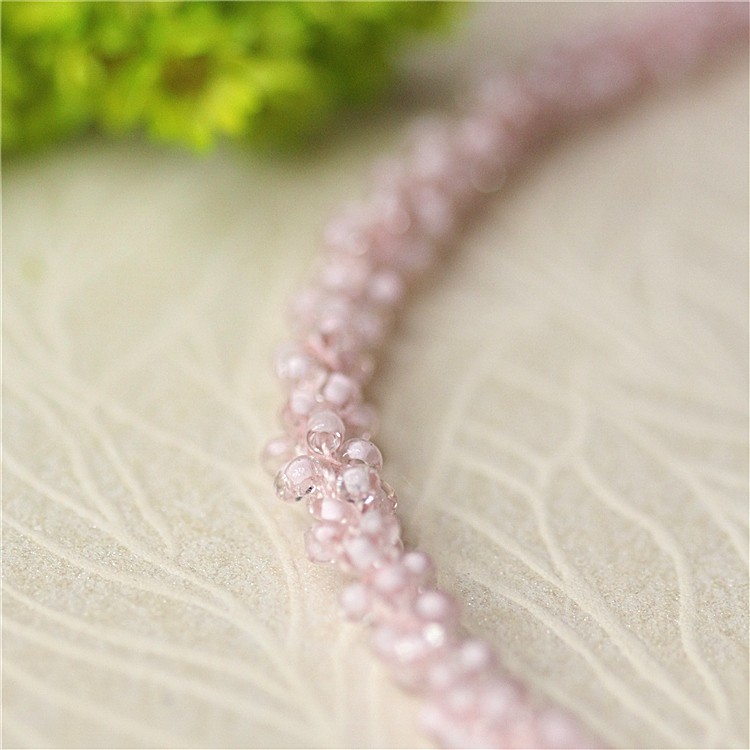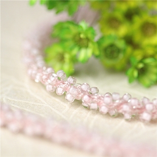 水晶粉色 单价一米 连线细绳水晶玻璃米珠子花边手工