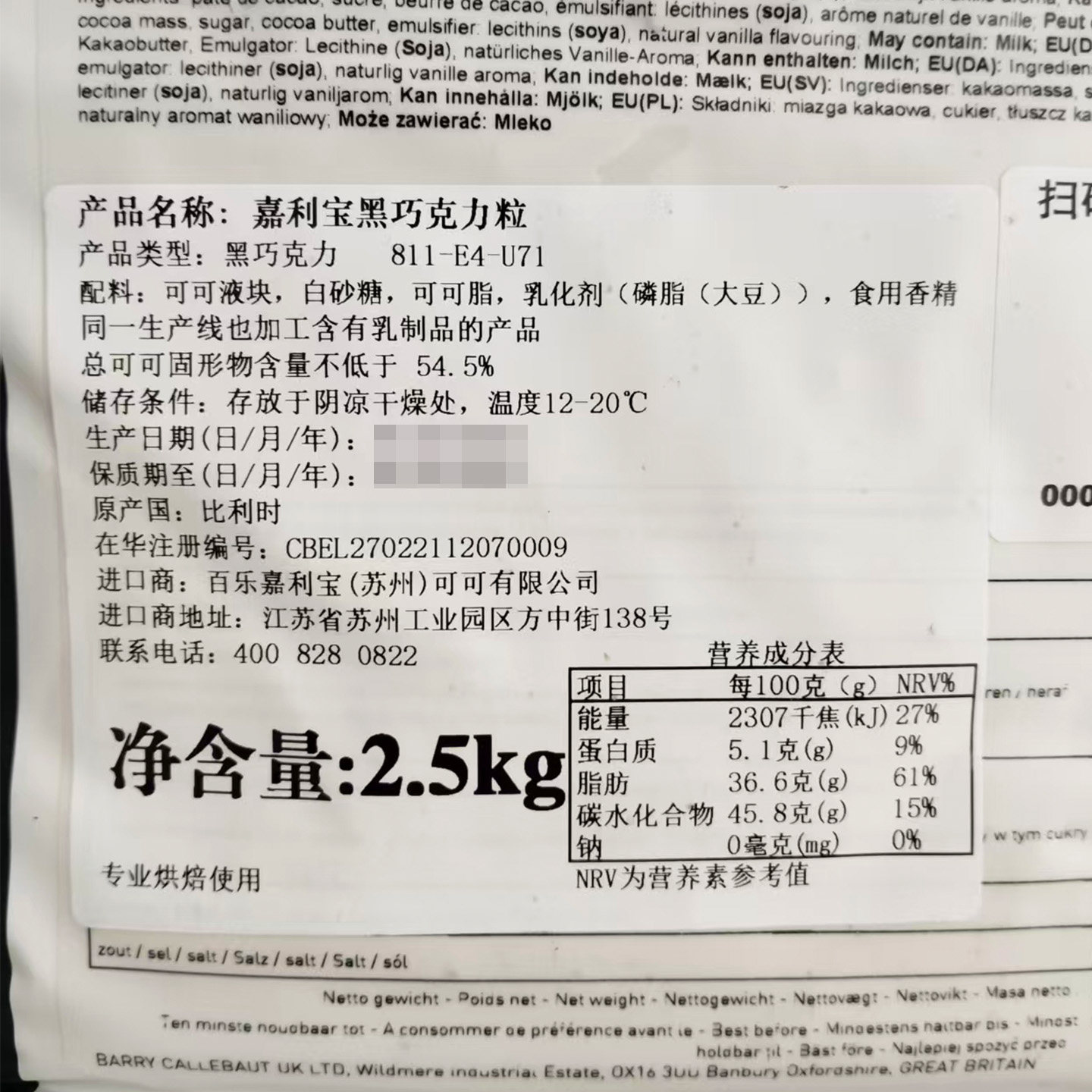 比利时嘉利宝54.5%黑巧克力粒2.5kg纯可可脂甜品蛋糕装 饰烘焙原料