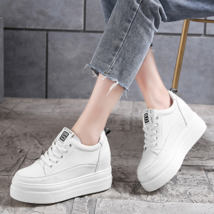 百搭休闲鞋 8cm内增高女鞋 厚底松糕小个子韩版 2026春季 坡跟小白鞋