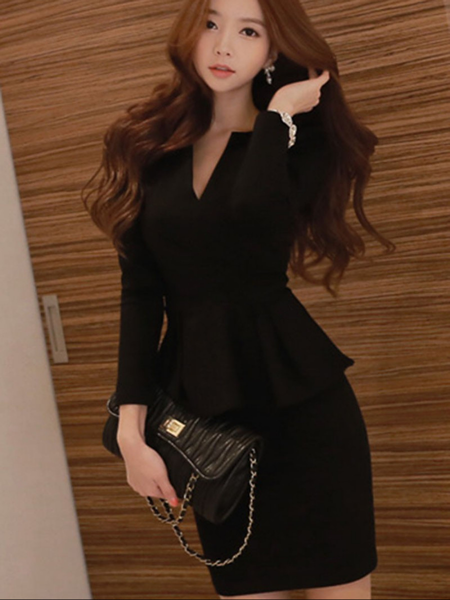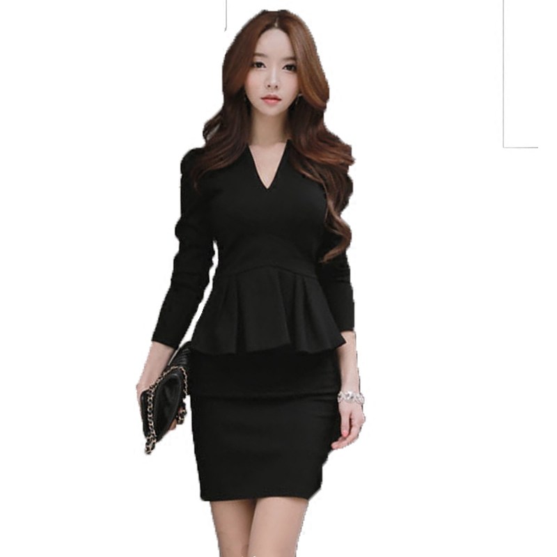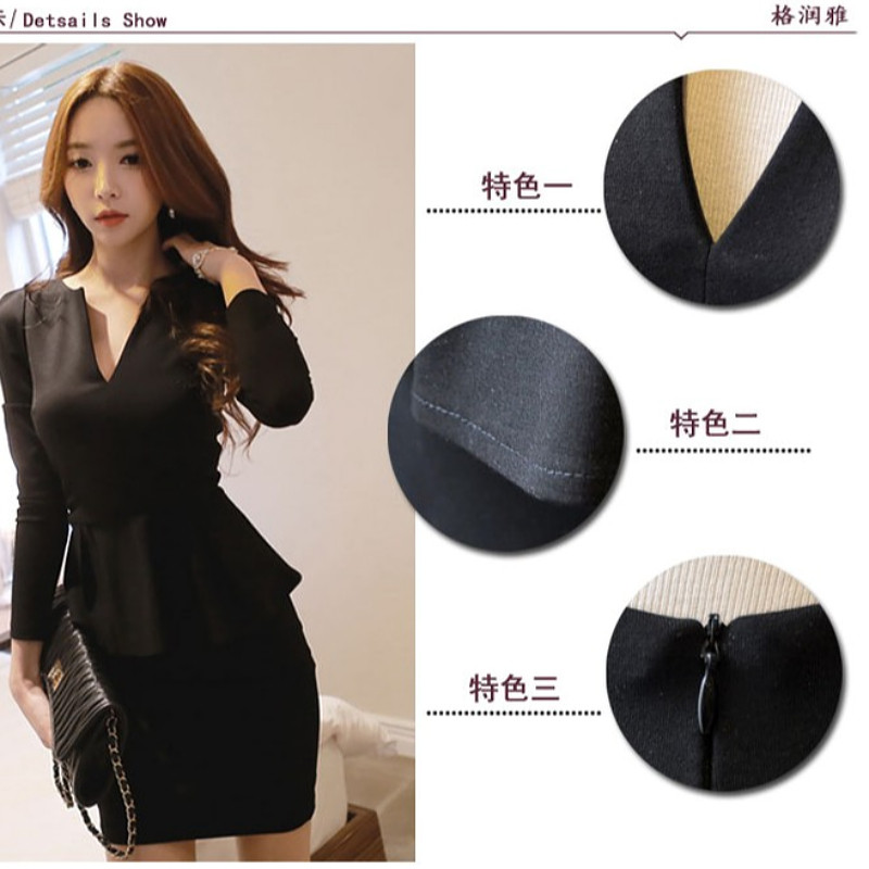 裙装 套裙两件套 长袖 荷叶摆显瘦包臀时尚 上衣 大码 套装 OL职业女装