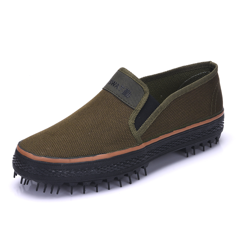 工地劳保军训男女胶鞋 双钱牌一脚蹬套脚不系带解放鞋 黑色作训鞋