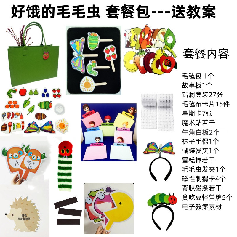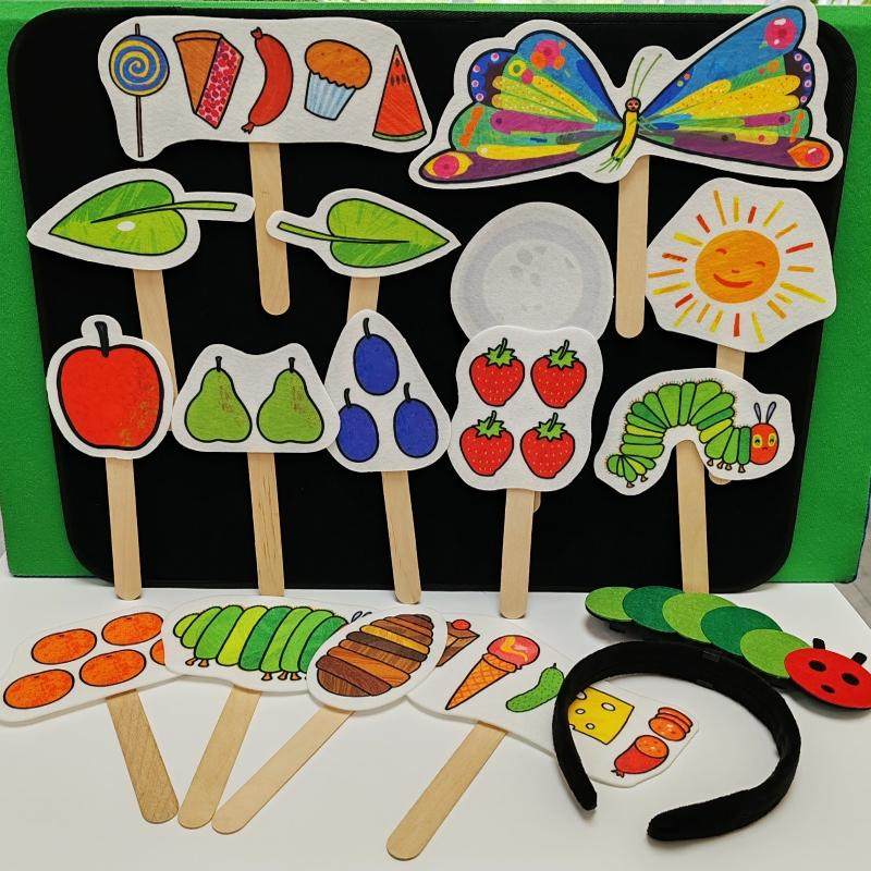 好饿 毛毛虫绘本讲故事拓展教具道具单词亲子游戏早教英语毛毡卡