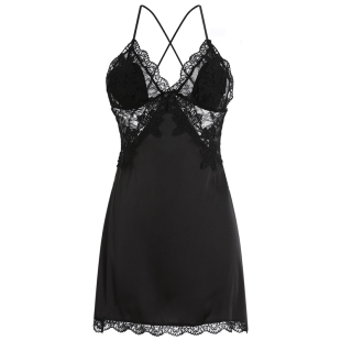 雅小姐性感睡衣女秋冬薄款 带胸垫聚拢冰丝诱惑美背私房吊带睡裙