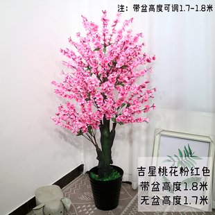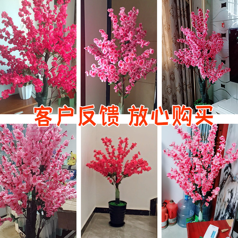 仿真桃花枝假樱花腊梅花塑料花干花娟花假树造景落地摆件室内装 饰