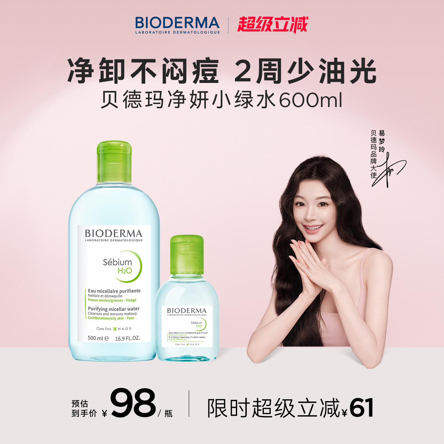 贝德玛卸妆水液女脸部温和深层清洁敏感肌官方膏油旗舰店品牌正品
