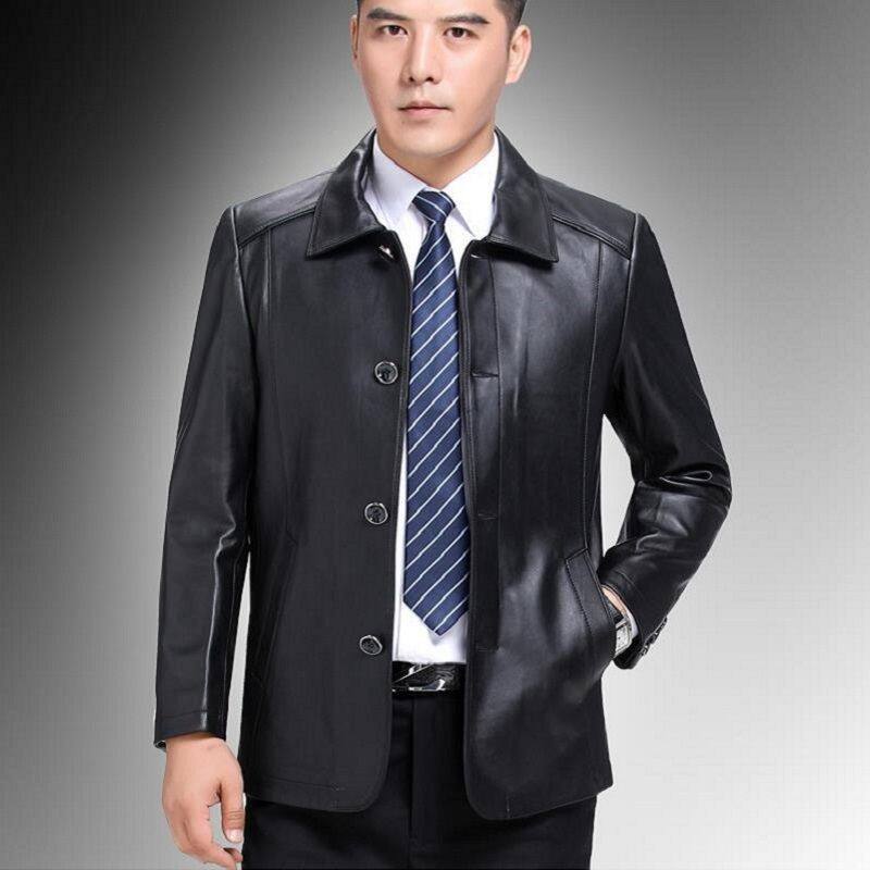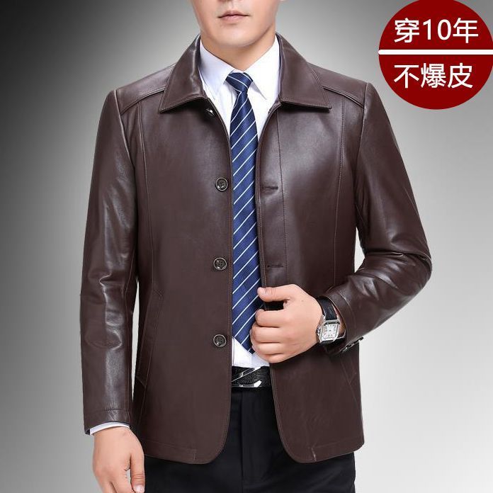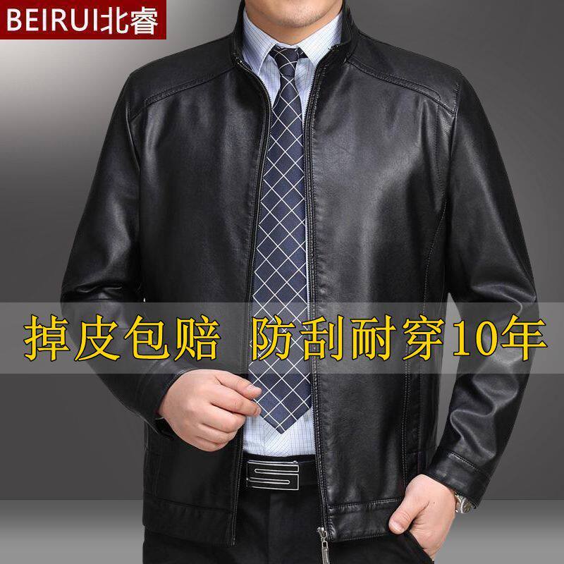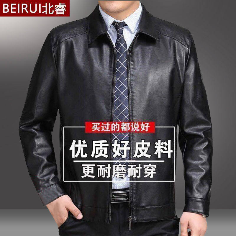 加绒外套 皮夹克中老年爸爸冬季 清仓海宁外贸真好皮衣男春秋装 男士
