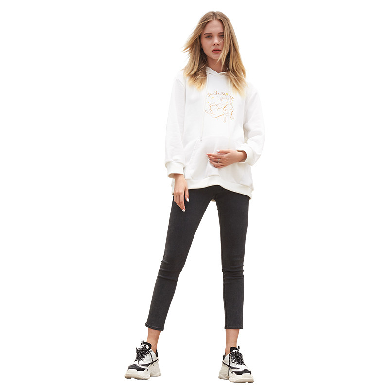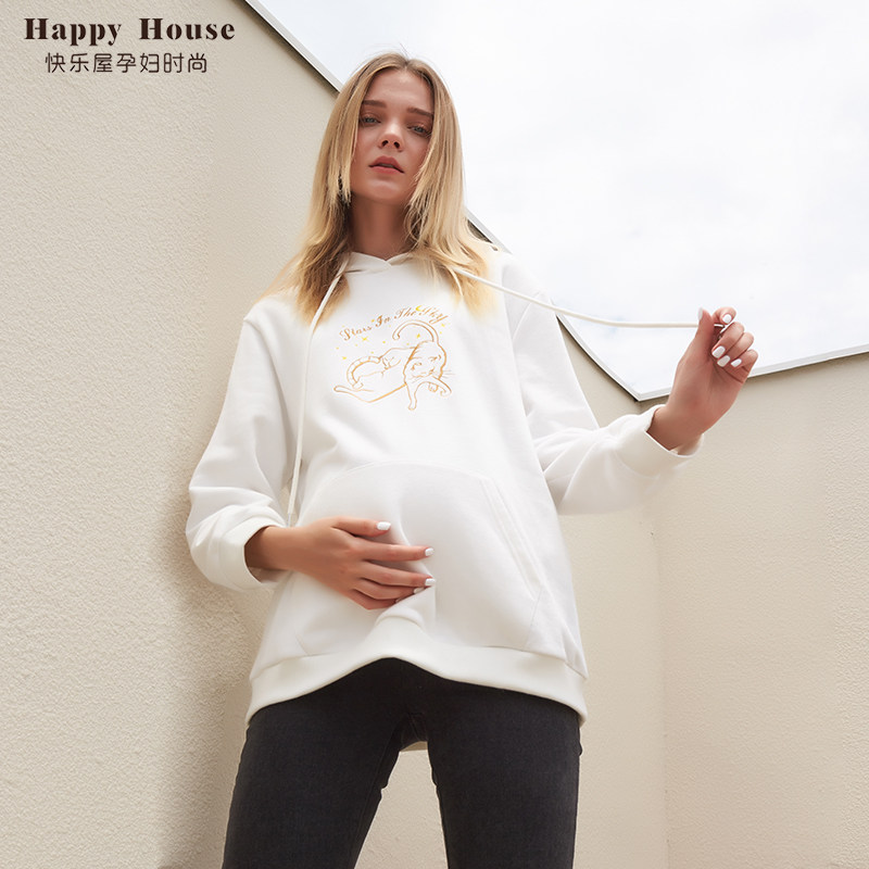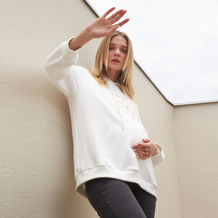 孕妇卫衣宽松洋气孕妇装 刺绣连帽时尚 2025新款 快乐屋孕妇上衣春装