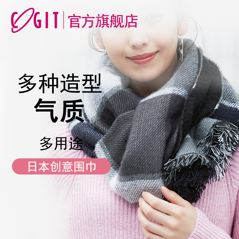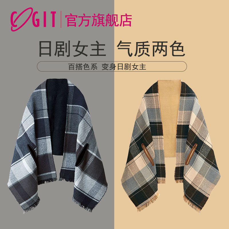 日本COGIT2ways双面多造型披肩围巾多用冬女保暖插口便携折叠保暖